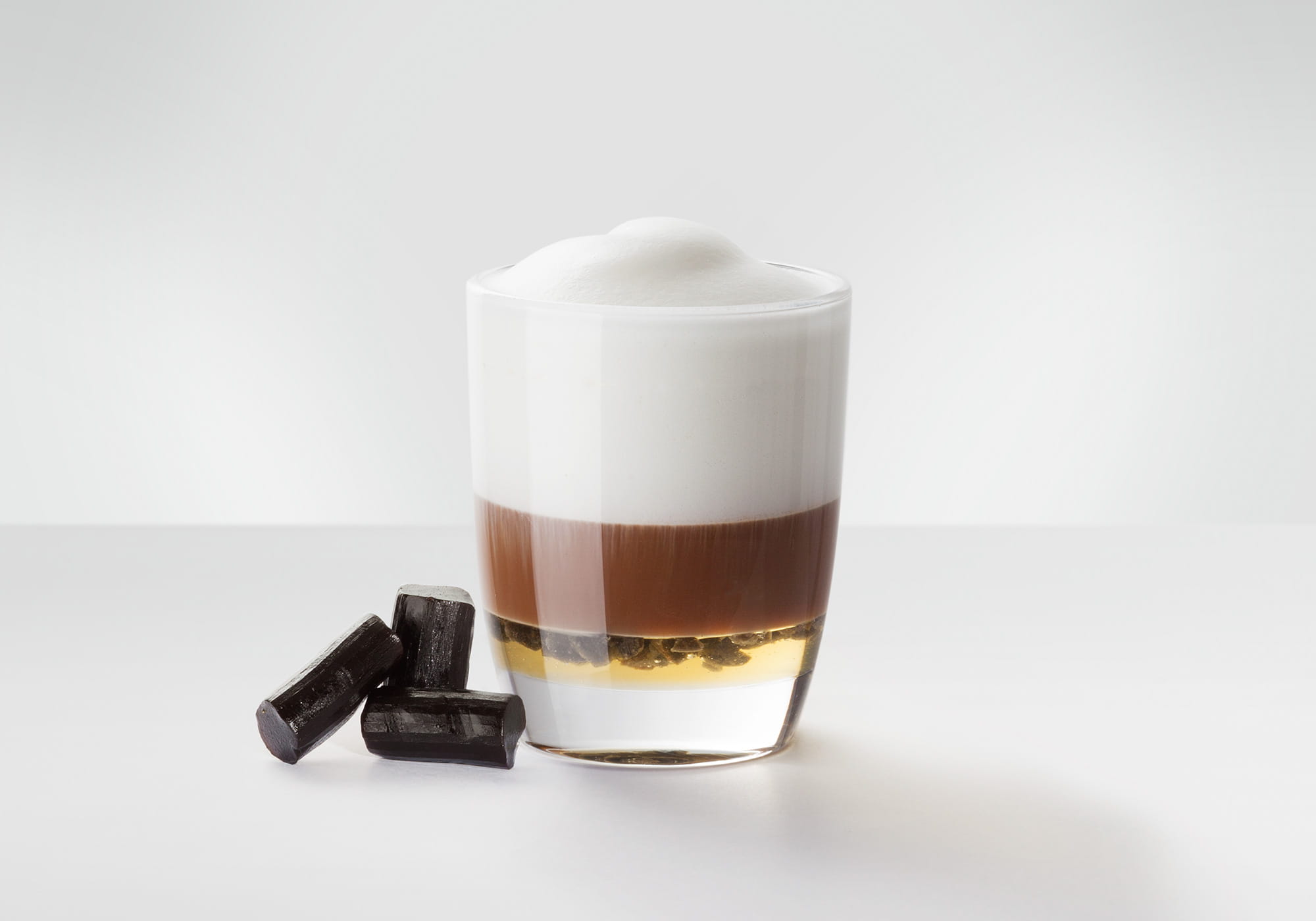 Перед употреблением хорошо перемешайте кофейный напиток и добавьте в молочную пену немного порошка лакрицы.